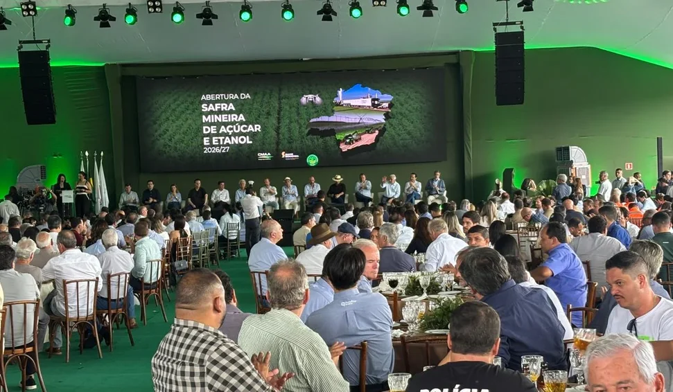 A safra 2026/2027 de cana-de-açúcar em Minas Gerais deve atingir 83,3 milhões de toneladas, representando crescimento de 11,6% em relação ao ciclo anterior (74,7 milhões de toneladas). O avanço é resultado da combinação entre leve expansão de área (+1%) e recuperação da produtividade agrícola (+10%), que passa de 72,1 para 79,4 toneladas por hectare. Os dados são da SIAMIG Bioenergia (Associação da Indústria da Bioenergia e do Açúcar) e foram apresentados na 9ª Abertura da Safra Mineira de Açúcar e Etanol, promovida pela CMAA, um dos principais players na produção de bioenergia em Minas Gerais e no Brasil, no dia 24 de abril de 2026, na fazenda Santa Vitória, próximo à Unidade Vale do Tijuco, em Uberaba/MG.