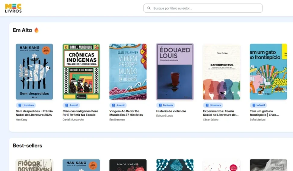 MEC LIVROS — A biblioteca digital foi organizada a partir de critérios que valorizam a diversidade literária, cultural e linguística e conta com uma série de ferramentas voltadas para facilitar a experiência do usuário, como agente de IA para tirar dúvidas e oferecer sugestão de leituras e um painel de acompanhamento das obras acessadas. A plataforma também tem foco na acessibilidade, com opções de ajuste de fonte e contraste, suporte para pessoas com dislexia e compatibilidade com leitores de tela.