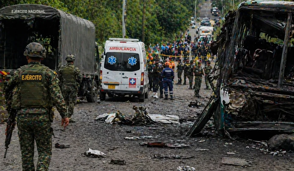 De acordo com relatos, explosivos foram detonados em uma rodovia no sudoeste do país, configurando o ataque guerrilheiro mais letal contra civis nas últimas duas décadas.