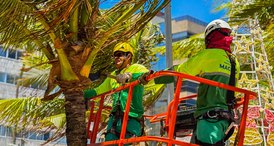 Alurb intensifica limpeza e poda de coqueiros na orla marítima