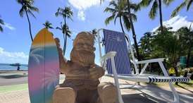 Papai Noel de 'areia' é instalado ao lado da Cadeira Gigante para o Natal de Maceió