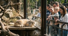 Manul Timofey relaxa ao sol e encanta visitantes do Zoo de Moscou
