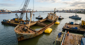 Navio histórico que afundou parcialmente em Santos será içado; Marinha investigará causas