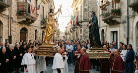 Cerimônia anual em Noto reúne multidão para celebrar o reencontro entre Maria e Cristo, com rituais marcados por emoção e fé.