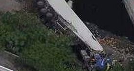 Caminhão com quatro pessoas cai de ponte na Marginal Tietê