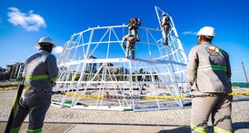 Prefeitura de Maceió inicia montagem da árvore de Natal de 34 metros na Ponta Verde