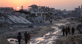 Imagem retrata a devastação em área da Faixa de Gaza após confrontos recentes