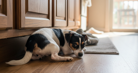 Cão usa "técnica ninja" para se esconder embaixo do armário