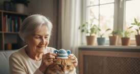 Vovó conquista a internet ao criar acessórios de crochê para seu gato