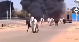 Caminhão carregado de bois e vacas tomba no Anel Rodoviário de BH
