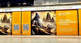 Trem da marca Sputnik Índia aparece no metrô de Deli