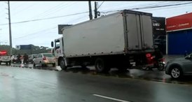 Acidente aconteceu durante a madrugada na Avenida Menino Marcelo; motorista do caminhão foi localizado após tentativa de fuga