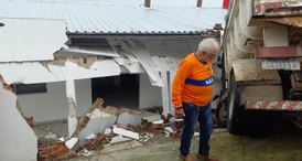 Caminhão desgovernado derruba muro da Cáritas Diocesana em Palmeira dos Índios
