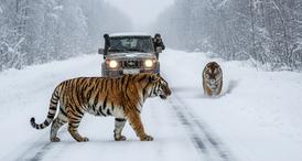 Flagrante raro mostra felinos caminhando em meio à neve; espécie é a maior do mundo
