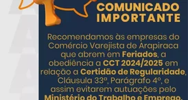 Sindilojas Arapiraca alerta: Portaria que altera regulamentação do trabalho em feriados entra em vigor em julho