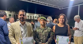 Secretário Eduardo Marinho e subsecretária Talyta Nobre recebem homenagem do Exército em solenidade em Maceió