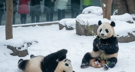 Neve em Moscou encanta pandas do zoológico