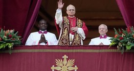 Papa Leão XIV acena antes de conceder a bênção de Natal na Basílica de São Pedro