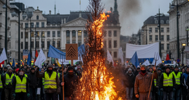 Agricultores incendeiam árvore de Natal durante manifestação em Bruxelas