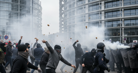 Manifestantes lançaram batatas e objetos contra a polícia, que respondeu com gás lacrimogêneo. Agricultores protestam contra políticas da União Europeia e acordo com o Mercosul.