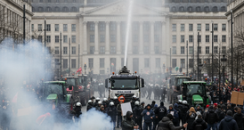 Protesto de agricultores em frente ao Parlamento Europeu termina em confronto