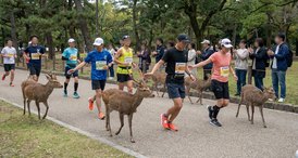 Cervos maratonistas viram atração à parte no Japão