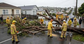Equipe do Corpo de Bombeiros atua para remover árvore de 15 metros que bloqueou acesso a residências em Belo Horizonte.