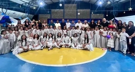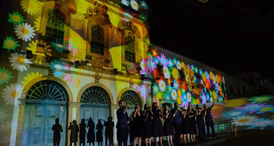Projeção mapeada no convento e canto coral encantam público no Penedo Luz