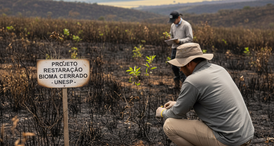 Projeto propõe uso de sementes resistentes ao fogo para acelerar recuperação de áreas devastadas, como o Cerrado.