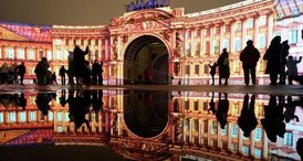 Evento em São Petersburgo destaca novas mídias com espetáculo visual no histórico edifício russo