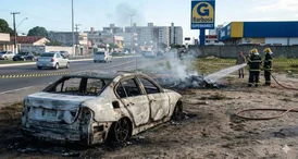 Veículo ficou destruído após pegar fogo; causas do acidente ainda serão investigadas