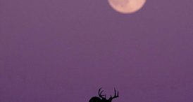 Um cervo caminha sob a luz da lua cheia em Kansas City