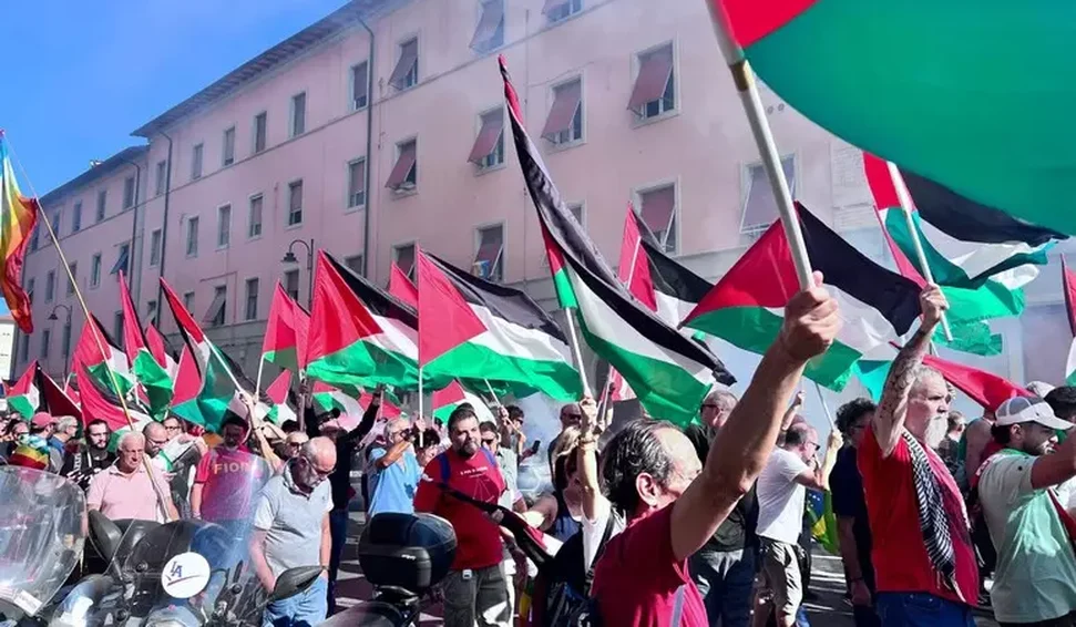 Em Livorno, litoral da Toscana, cerca de 5 mil pessoas participaram hoje de uma caminhada sob o grito de "Palestina livre". O protesto integra a programação da Cgil.
