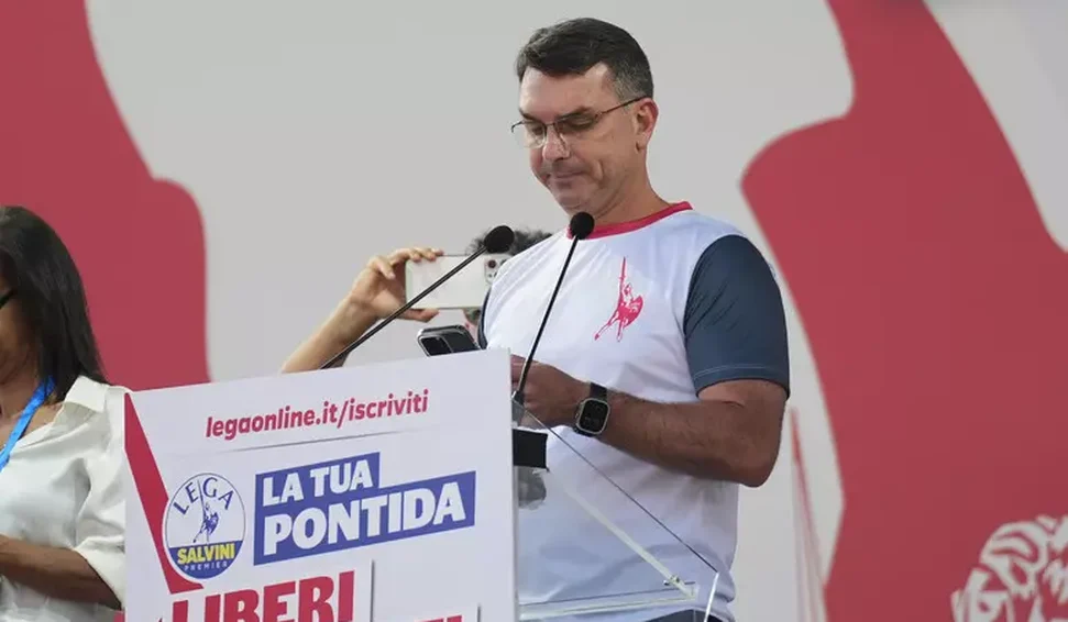 No palco do congresso do partido ultranacionalista Liga, organizado pelo vice-premiê e ministro de Infraestrutura e dos Transportes, Matteo Salvini, na cidade de Pontida, no norte do país, o brasileiro enfatizou que Bolsonaro foi condenado "por atos antidemocráticos apenas por criticar o sistema eleitoral e fazer discursos contra a esquerda corrupta".