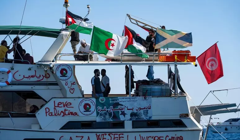A missão com cerca de 50 embarcações se encontra a menos de 200 milhas náuticas (370 quilômetros) do litoral de Gaza e está perto de entrar na área marítima onde ficará sujeita a interceptações de Israel, que, nos últimos meses, prendeu ativistas em barcos humanitários em águas internacionais e depois os deportou.