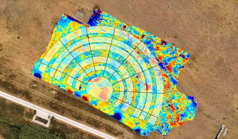 Após extensos levantamentos, incluindo fotografias aéreas, imagens de drones e uma análise geofísica conduzida pela Universidade da Basilicata, os arqueólogos creem cada vez mais na provável presença de um palco cênico.