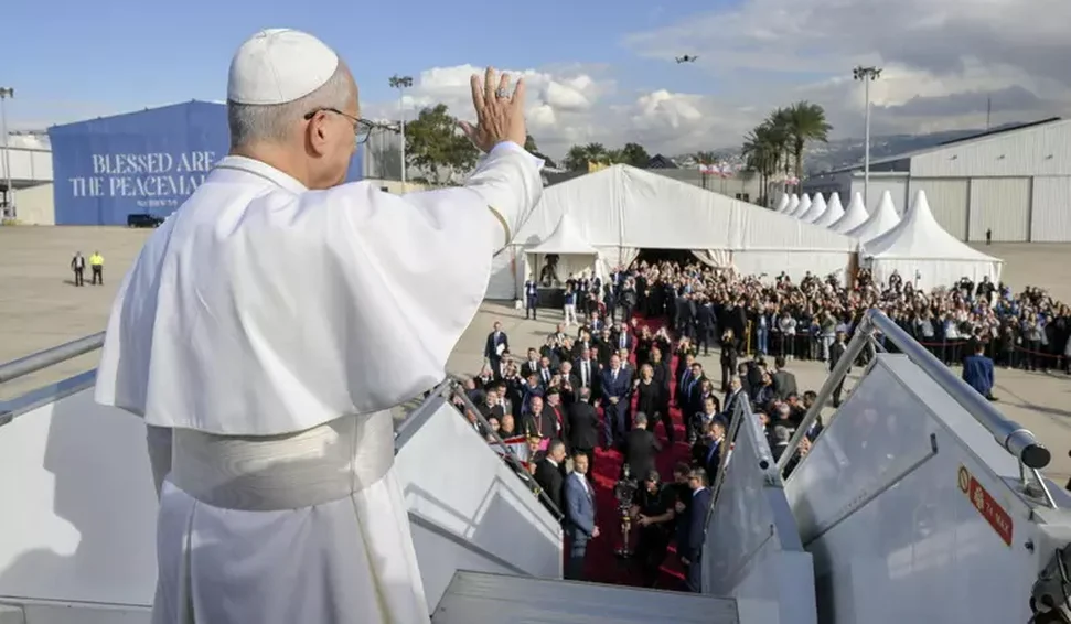 O papa Leão XIV encerrou nesta terça-feira (2) sua visita ao Líbano, no âmbito da primeira viagem internacional de seu pontificado, e embarcou de volta para Roma, na Itália, em um Airbus A320 da companhia aérea ITA Airways.