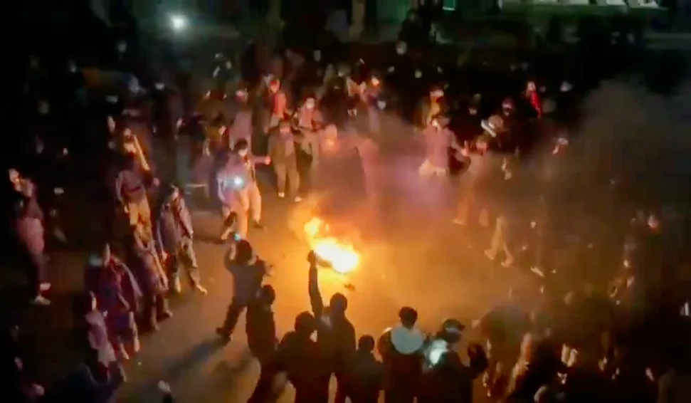 Em Mashhad, a segunda maior cidade do Irã, cerca de 725 quilômetros (450 milhas) a nordeste de Teerã, imagens supostamente mostravam manifestantes confrontando as forças de segurança. Detritos flamejantes e caçambas podiam ser vistos na rua, bloqueando a estrada. Mashhad é o lar do santuário Imam Reza, o mais sagrado do Islã xiita.