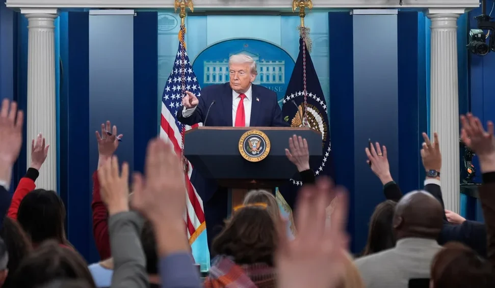 Por mais de 10 minutos, ele exibiu fotos de pessoas que, segundo ele, haviam sido presas, comentando sobre seus supostos crimes. Em determinado momento, perguntou aos repórteres na sala: “Você não está ficando entediado com isso, certo?”