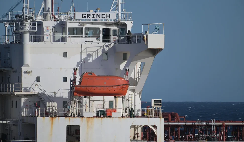 As autoridades marítimas francesas para o Mediterrâneo disseram que o navio, o Grinch, é suspeito de operar com bandeira falsa. A Marinha francesa está escoltando o navio até uma ancoragem para mais inspeções, segundo o comunicado. O petroleiro partiu da cidade de Murmansk, no noroeste da Rússia.