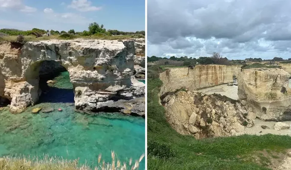 Moradores locais relataram ter ouvido um grande barulho e, na sequência, perceberam o desabamento da formação rochosa, uma ponte natural esculpida ao longo dos séculos pela erosão. O episódio vem sendo considerado o dano paisagístico mais significativo registrado na Puglia nos últimos anos.