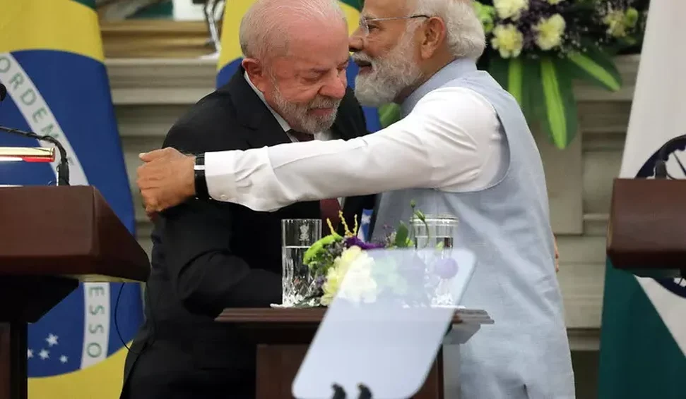 Isso cria muitas oportunidades de cooperação com o Brasil e traduz nosso compromisso com uma agenda que coloca a tecnologia a serviço do desenvolvimento inclusivo", afirmou Lula em coletiva de imprensa conjunta com Modi em Nova Délhi.