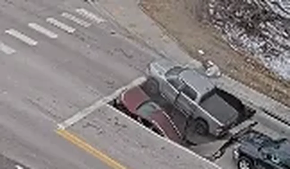 Dois veículos foram subitamente engolidos por uma cratera enquanto aguardavam em um cruzamento em Omaha, no dia 24 de fevereiro. Imagens da câmera de um estacionamento próximo registraram o dramático incidente.