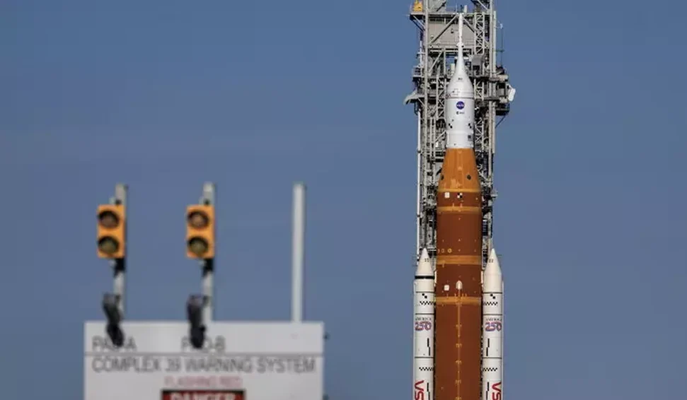 O foguete Space Launch System (SLS), de 98 metros de altura, estava posicionado na plataforma de lançamento em Cabo Canaveral, na Flórida, porém equipes da agência espacial americana detectaram problemas no fluxo de hélio no veículo.