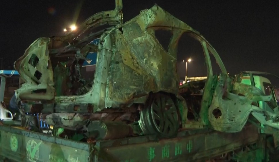 As imagens capturadas pela Associated Press mostraram trabalhadores de emergência no local, bem como um carro carbonizado sendo levado por um caminhão do local.