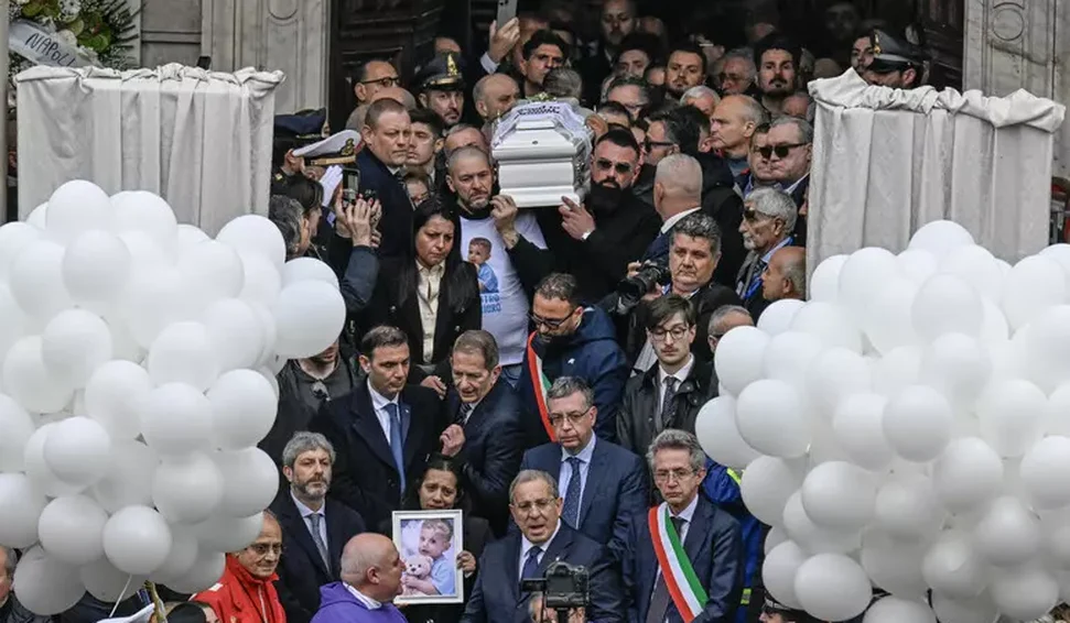 Milhares de pessoas e autoridades italianas, incluindo a primeira-ministra Giorgia Meloni, compareceram em Nola, perto de Nápoles, ao funeral de uma criança de dois anos que morreu em um hospital, dois meses após receber um transplante de coração danificado, em um caso que comoveu a nação.