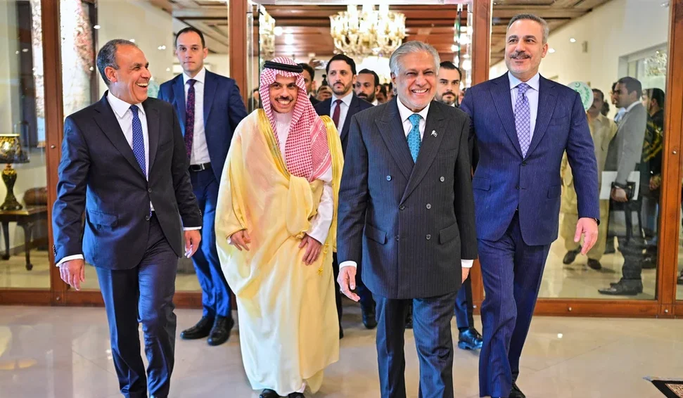 "O Paquistão está muito feliz que tanto o Irã quanto os EUA tenham expressado sua confiança no Paquistão para facilitar as negociações. O Paquistão terá a honra de sediar e facilitar negociações significativas entre os dois lados nos próximos dias, disse o ministro das Relações Exteriores da Primeira Divisão, Ishaq Dar, depois que diplomatas de ponta da Turquia, Egito e Arábia Saudita se reuniram em Islamabad.