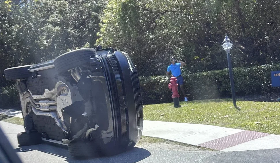 O motorista do caminhão e outra pessoa ajudaram Woods a sair de seu veículo pela janela do passageiro. Nem Woods nem o caminhoneiro ficaram feridos.