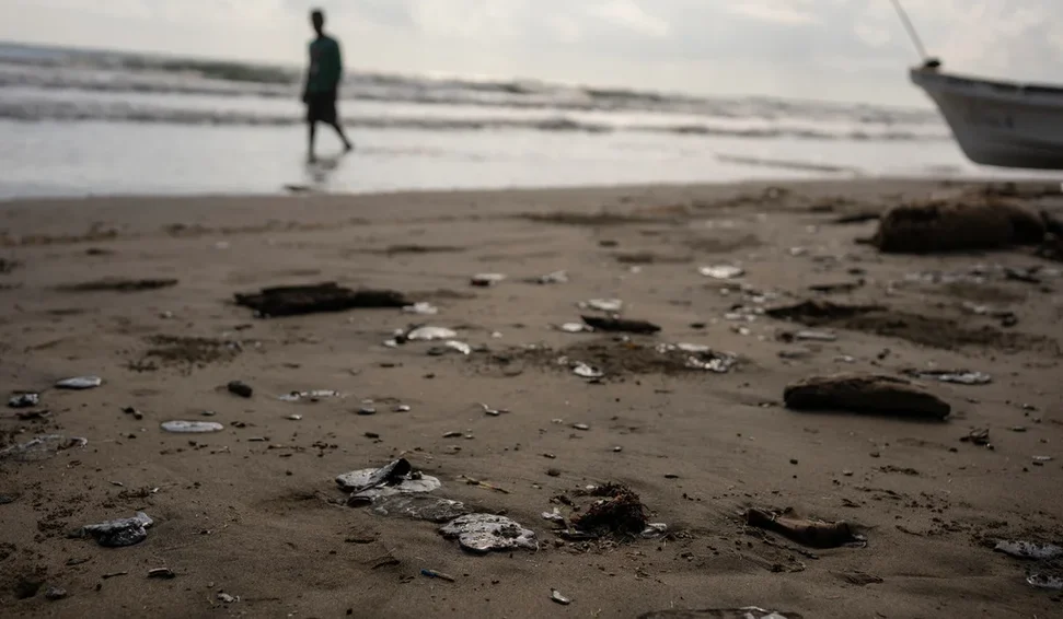 Imagens de fevereiro circuladas pelos ativistas combinam com imagens obtidas pela Associated Press na terça-feira por meio da Copernicus, a agência europeia do clima. As fotos mostram um barco flutuando sobre um mar nublado com o que os grupos dizem ser petróleo, que parece estar saindo de uma plataforma.