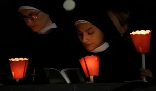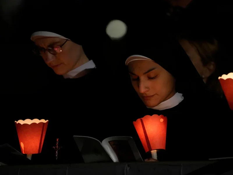 Cerca de 30.000 fiéis se reuniram do lado de fora do monumento pagão, seguindo as estações enquanto eram recitados em alto-falantes.